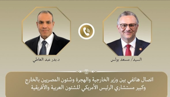 بحث الدكتور بدر عبد العاطي، وزير الخارجية والهجرة وشئون المصريين بالخارج، ومسعد بولس، كبير مستشاري الرئيس الأمريكي للشئون العربية والإفريقية، خلال اتصال هاتفي، تعزيز إطار التنسيق والتشاور المستمرين بين مصر والولايات المتحدة في مختلف المجالات، بما يعكس عمق الشراكة الإستراتيجية التي تجمع البلدين.