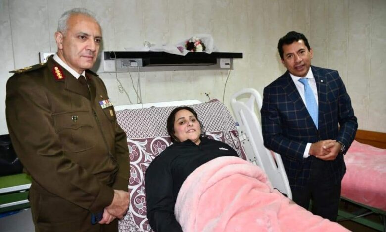 وزير الرياضة يزور بطلة رفع الأثقال “نهلة رمضان” فى المستشفى