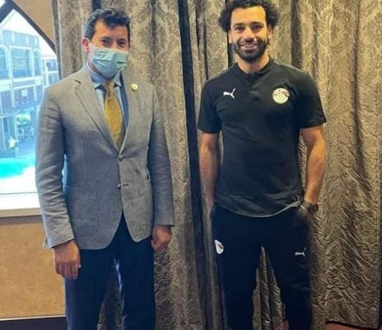وزير الرياضة يلتقي بمحمد صلاح علي هامش زيارته للمعسكر التدريبي للمنتخب