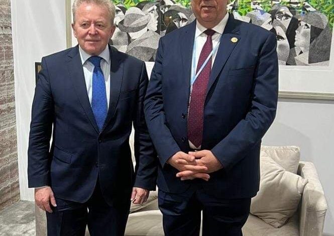 التقي السيد القصير وزير الزراعة واستصلاح الأراضي على هامش اجتماعات مؤتمر المناخ في الدورة ٢٧ المنعقد حالياً بشرم الشيخ مع يانوش فويتشوسكي المفوض الزراعي بالاتحاد الأوروبي والوفد المرافق له بحضور كريستان برجر رئيس بعثة المفوضية الأوروبية بالقاهرة حيث تناول اللقاء عدد من الموضوعات ذات الاهتمام المشترك.