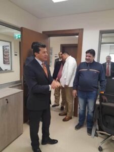 حرص وزير الشباب والرياضة على المرور بعدد من المكاتب الإدارية حيث التقى العاملين من مختلف الإدارات مستمعاً لأرائهم حول بيئة العمل والتقنيات التكنولوجية الجديدة المُطبقة داخل ديوان الوزارة بالحى الحكومى بالعاصمة الإدارية الجديدة وانطباعاتهم عن أول أيام تواجدهم بشكل كامل بالديوان الجديد.