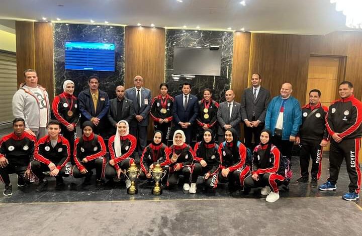 وزير الشباب والرياضة يستقبل بعثة منتخب مصر لرفع الأثقال في مطار القاهرة