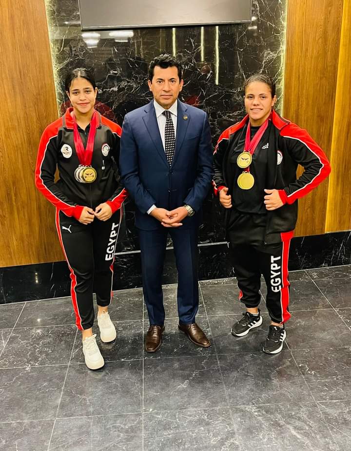 وزير الشباب والرياضة يستقبل بعثة منتخب مصر لرفع الأثقال في مطار القاهرة