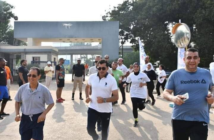وزير الشباب ورئيس الرقابة المالية يقودان الماراثون الأخضر بمركز التنمية الشبابية بالجزيرة