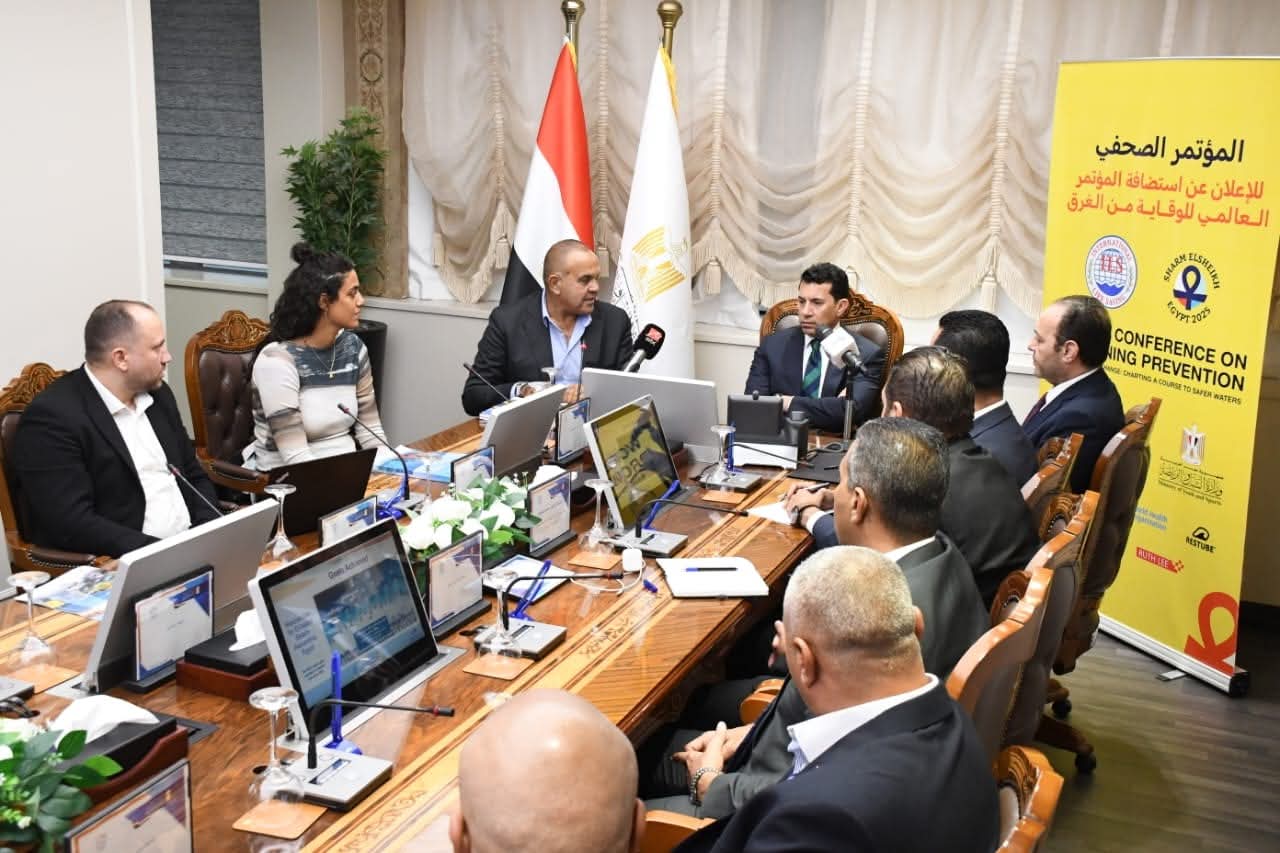 وزير الشباب يشهد المؤتمر الصحفي للإعلان عن استضافة مصر للمؤتمر الدولي للحد من الغرق بشرم الشيخ