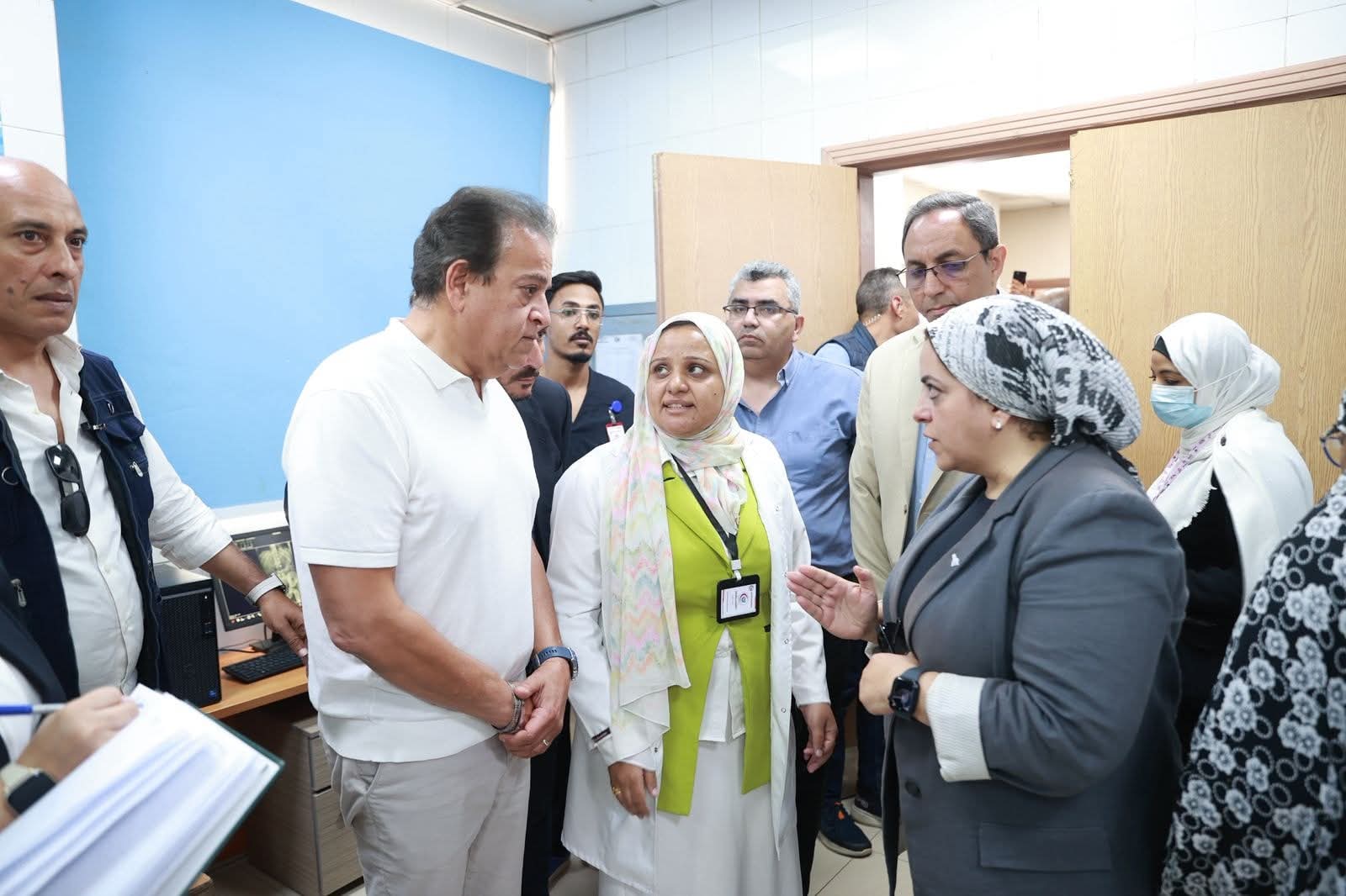 رافق الوزير في الجولة كل من الدكتور محمد الطيب، نائب الوزير، والدكتور بيتر وجيه، مساعد الوزير للطب العلاجي، والدكتور شريف مصطفى، مساعد الوزير للمشروعات القومية، والدكتور عمر شريف عمر، أمين المجلس الأعلى للمستشفيات الجامعية، والدكتورة مها إبراهيم، رئيس أمانة المراكز الطبية المتخصصة، والدكتور أحمد صادق، مدير مديرية الشؤون الصحية بقنا.