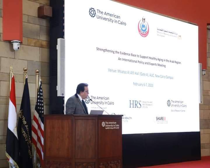 جاء ذلك خلال مشاركة الدكتور خالد عبدالغفار في اجتماعٍ دوليٍ للسياسات والخبراء، أمس الاثنين، والذي ضم باحثين من مختلف البلدان العربية، وممثلين عن قطاعات الصحة والتخطيط والتنمية الاجتماعية بالدول العربية، وأساتذة بمختلف الجامعات المصرية والدولية، تحت عنوان «تعزيز قاعدة الأدلة لدعم الشيخوخة الصحية في المنطقة العربية»، وينظمه معهد الصحة العالمية والبيئة البشرية، ومركز البحوث الاجتماعية بالجامعة الأمريكية بالقاهرة، وبالتعاون مع منظمة الصحة العالمية، والمعهد الوطني للشيخوخة، والدراسة الدولية للصحة والتقاعد، ودراسة بروتوكول التقييم المعرفي المنسق، ومسح الصحة والتقاعد في أوروبا، والمعهد العالمي لصحة الدماغ.