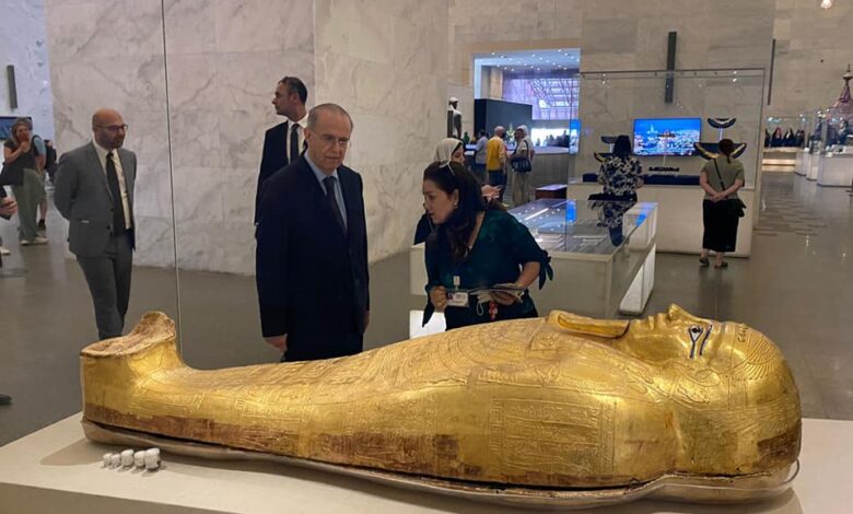 وذكر بيان صادر عن وزارة السياحة والآثار اليوم الجمعة ٢٧ مايو ٢٠٢٢ أن الدكتورة ماريان عادل أمينة المتحف اصطحبت وزير الخارجية والوفد المرافق له في جولة داخل المتحف شملت زيارة قاعات العرض المركزي والمومياوات الملكية والنسيج المصري التى تم افتتاحها مؤخرا.