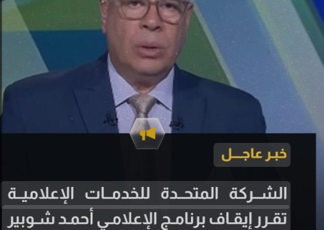 تصدر اسم الإعلامي أحمد شوبير، منصات التواصل الاجتماعي خلال الساعات القليلة الماضية، بعد قرار الشركة المتحدة بإيقاف برنامجه «ملعب أون تايم»، المذاع عبر فضائية «أون تايم سبورتس»، وإنهاء التعاقد معه.
