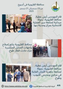 شهدت محافظة القليوبية خلال هذا الأسبوع نشاطًا مكثفًا للمهندس أيمن عطية محافظ القليوبية في مختلف القطاعات، وجاءت أبرز الجهود كالتالي: