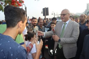 عقب الصلاة، أجرى محافظ القليوبية جولة على كورنيش النيل بمدينة بنها، حيث التقى بالمواطنين وقدم لهم التهنئة بعيد الأضحى، ووزّع الورود والهدايا، في لفتة إنسانية حرص من خلالها على إدخال البهجة إلى قلوب المواطنين.