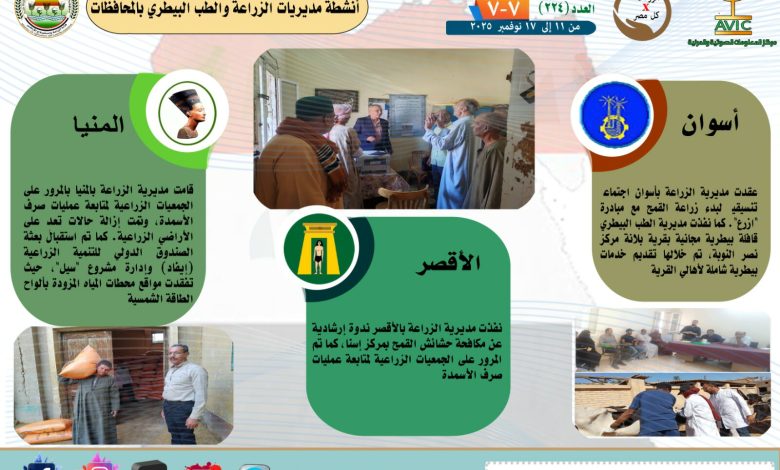 وضوح الإخباري تستعرض جهود مديريات الزراعة والطب البيطري بالفترة من ١١ إلى ١٧ نوفمبر الجاري