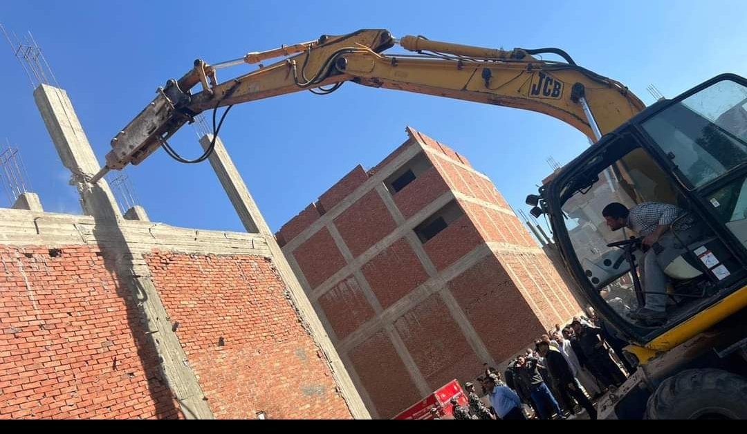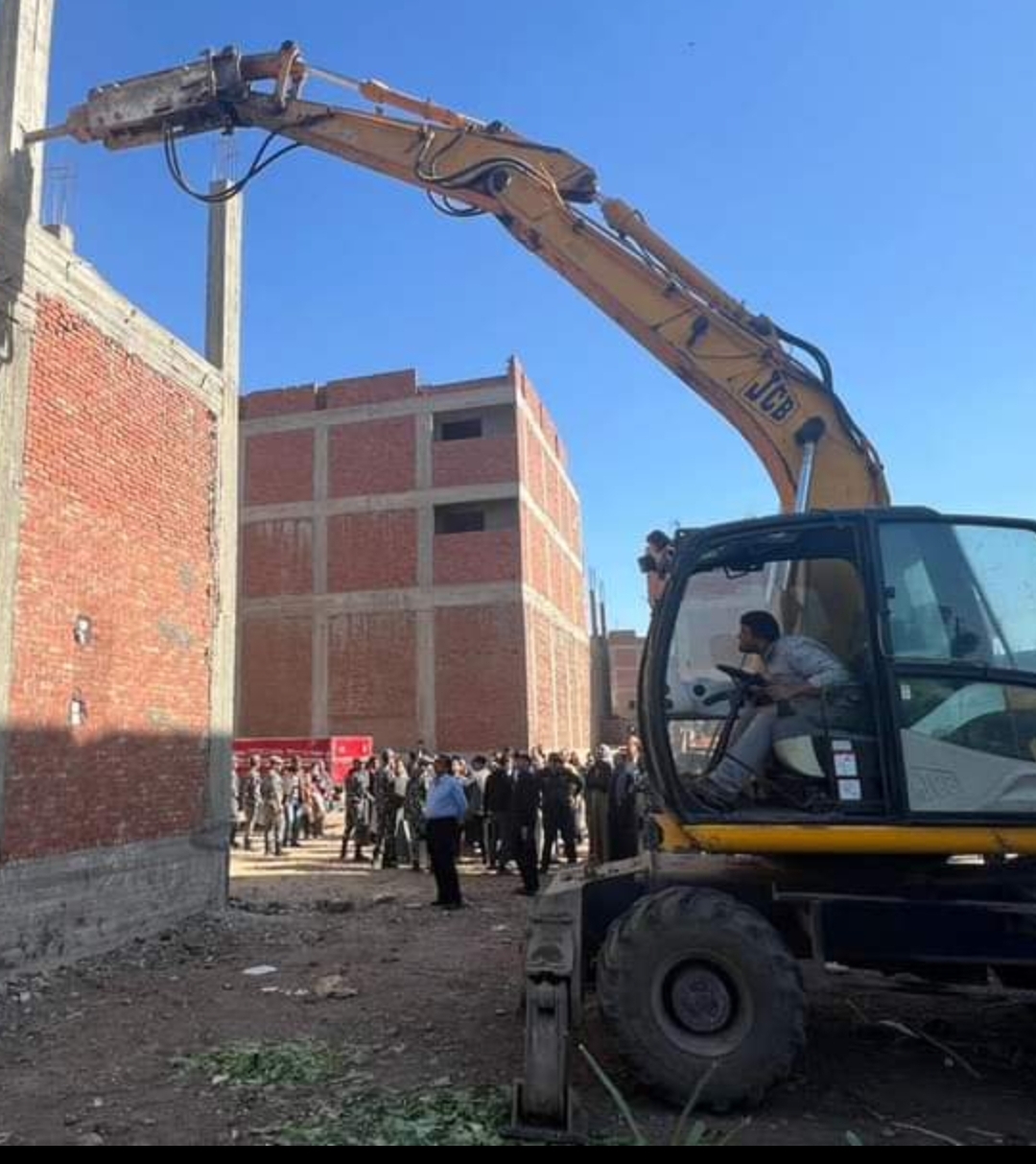 حيث تمت ازالة تعدي عبارة عن اول علوي واعمدة وحوائط ثان علوي خارج الحيز العمراني علي مساحة 150 متر بقرية بهادة .