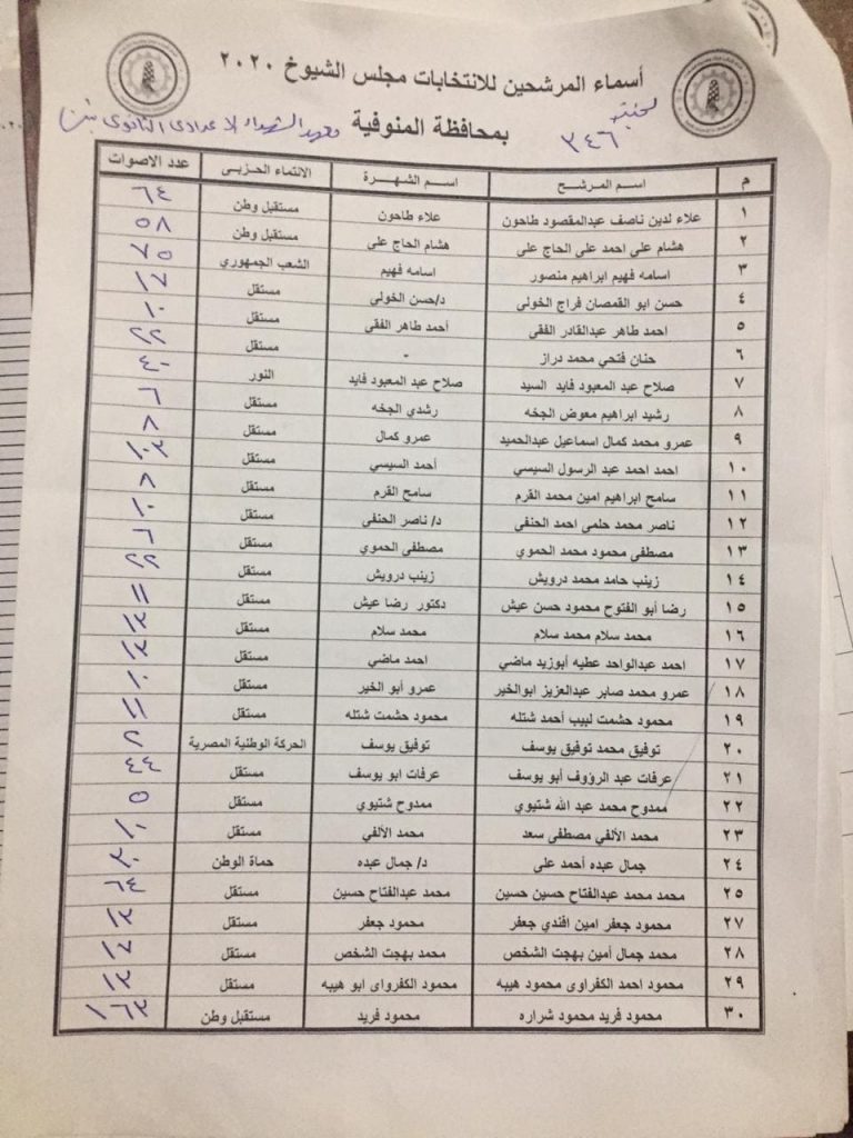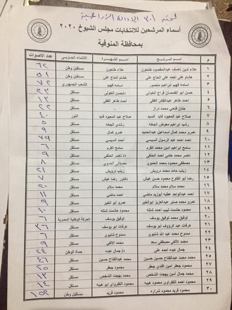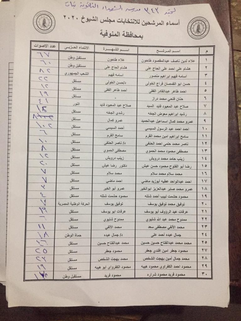 وضوح تنشر كشوف الفرز لأصوات الناخبين بالشهداء منوفية