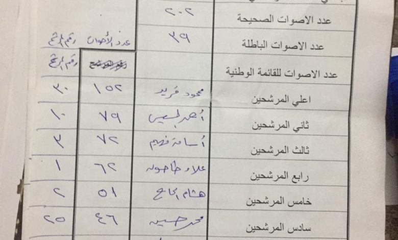 كشف رصد لفرز الاصوات باللجنة الفرعية (301) الادارة الزراعية بالشهداء