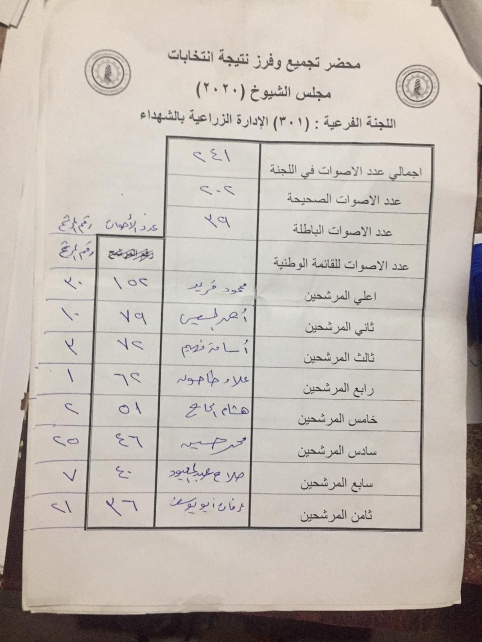 كشف رصد لفرز الاصوات باللجنة الفرعية (301) الادارة الزراعية بالشهداء