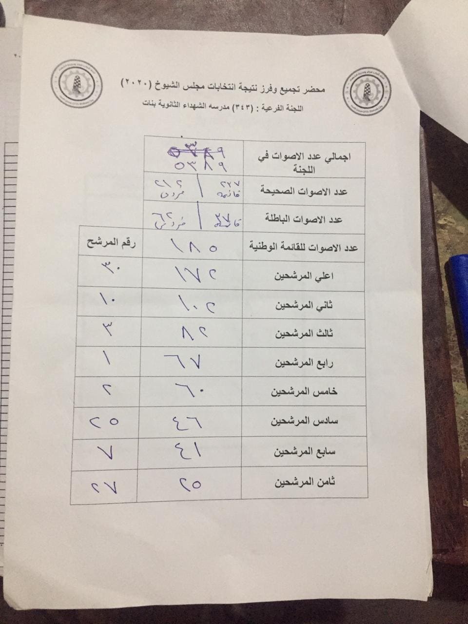 كشف رصد لفرز الاصوات باللجنة الفرعية ( 343) مدرسة الشهداء الثانوية بنات