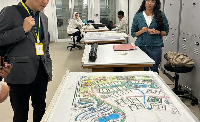 أوضح الدكتور حاتم محمود مدير برنامج هندسة العمارة المستدامة أن الدكتور تاكاشي تفقد ستوديو من تصميم طلاب العمارة المستدامة بالجامعة المصرية اليابانية