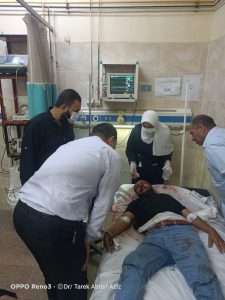 وكيل الصحة بالمنوفية يزور مصابى حادث انقلاب سيارة على الطريق السريع