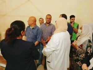 رافقه أثناء الزيارة المفاجئة الدكتور عصام نبيل مدير إدارة التفتيش الفني مدير الرقابة الداخلية للقطاع الصحي بالمحافظة والقذافي عبد الرحمن مدير إدارة الشؤون الإدارية والمعتصم بالله السيوطي نائب مدير إدارة المتابعة مساعد مدير الرقابة الداخلية للقطاع الصحي بالمحافظة.
