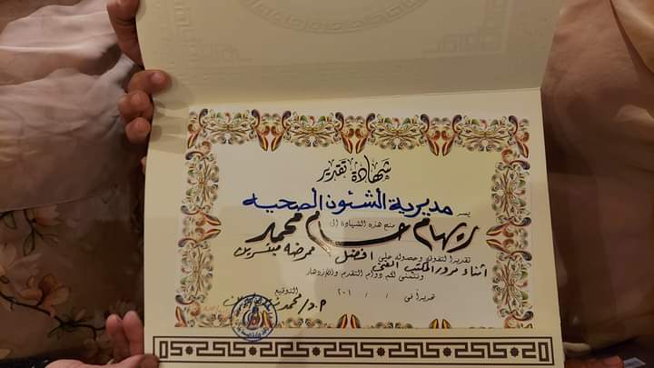 وكيل صحة أسيوط يكرم الممرضه ريهام حسام لتميزها في العمل