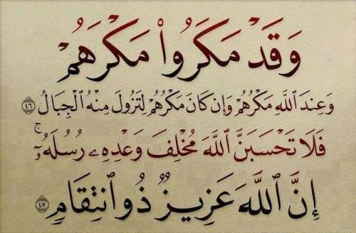 وَقَدْ مَكَرُوا مَكْرَهُمْ …. إِنَّ اللَّهَ عَزِيزٌ ذُو انتِقَامٍ