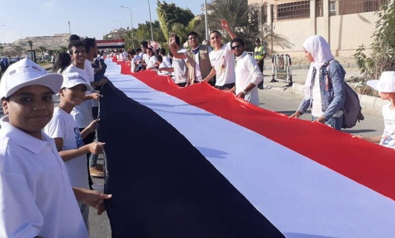 ٢٠٠٠ شاب يرفعون أطول علم في تاريخ المسيرات الشبابية إحتفالا بإنتصار أكتوبر