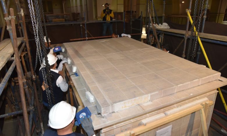 وبحسب بيان أصدرته وزراة السياحة والآثار اليوم الاثنين 19 ابريل 2021، أوضح اللواء عاطف مفتاح المشرف العام على مشروع المتحف المصري الكبير والمنطقة المحيطة، أن عملية النقل تمت وسط إجراءات أمنية من قبل شرطة السياحة والآثار والنجدة، تحت إشراف مرممي وأمناء المتحف.