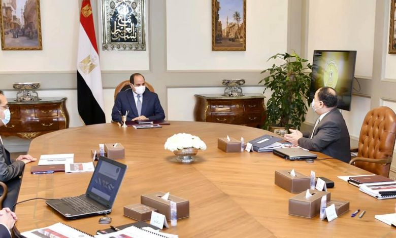 اجتمع الرئيس عبد الفتاح السيسي اليوم الاثنين 15 مارس 2021 مع الدكتور مصطفى مدبولي رئيس مجلس الوزراء، والدكتور محمد معيط وزير المالية، بحضور أحمد كجوك نائب وزير المالية للسياسات المالية، و الدكتور إيهاب أبو عيش نائب وزير المالية للخزانة العامة”.