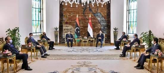 استقبل الرئيس عبد الفتاح السيسي اليوم الخميس 25 مارس 2021 السيد محمد المنفي رئيس المجلس الرئاسي الليبي وذلك بحضور سامح شكري وزير الخارجية، وعباس كامل رئيس المخابرات العامة بالإضافة إلى كلٍ من عبد الله اللافي نائب المجلس الرئاسي الليبي، وعماد الطرابلسي رئيس جهاز المخابرات العامة الليبي المكلف و طارق الحويج القائم بأعمال السفارة الليبية بالقاهرة