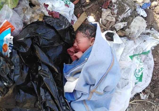عمال يعثرون على رضيع حي وسط القمامة بالدقهلية