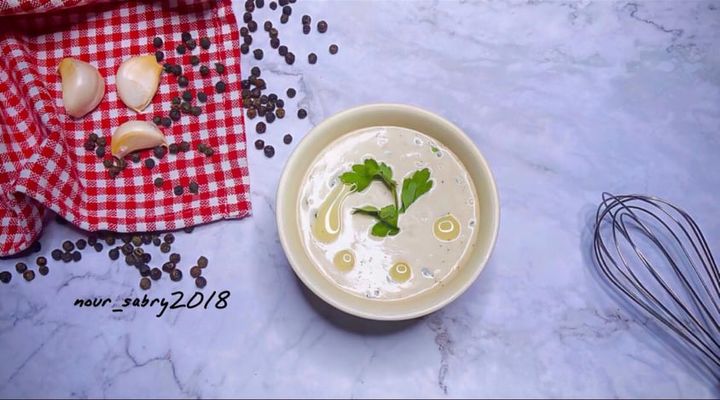 نضع في الخلاط ملعقتين كبيرة من الخل ورشة من الملح والفلفل الاسود وفصين ثوم مهروس وملعقة زبادي كبيره و معلقتين كبيرة زيت والقليل من الماء و ربع كوب من الطحينه وتضرب جيداً في الخلاط .