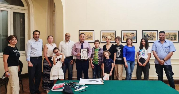 نظم المركز الثقافى الروسى بالقاهرة  “البيت الروسى”  بالتعاون مع مشروع ذاكرة الكاريكاتير ورشة رسم بورتريه لرسام الكاريكاتير الفنان “هانى عبد الجواد” لأطفال الجالية الروسية بالقاهرة وذلك على هامش معرض “روسيا فى ذاكرة الكاريكاتير المصرى”.