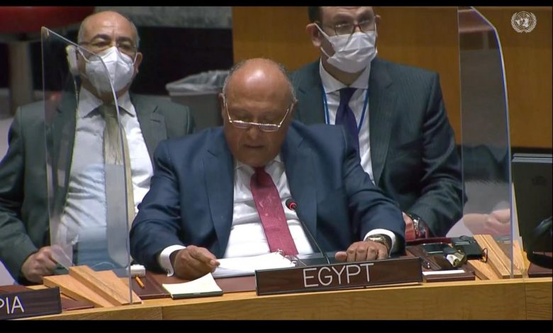 وقال وزير الخارجية، في كلمته أمام مجلس الأمن حول السد الإثيوبي:” إن رد فعل مصر على الاعتداء الإثيوبي على مياه النيل اتسم بضبط النفس، كما التزمنا بصدق بمبادرة الاتحاد الإفريقي وانخرطنا على مدار عامل كامل في المفاوضات من أجل صياغة حل إفريقي لهذه الأزمة، ورغم ذلك باءت كل تلك الجهود بالفشل”.
