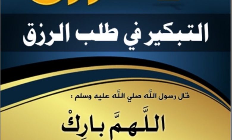عن النبي محمد صلى عليه وسلم  أنه قال: اللهم بارك لأمتي في بكورها ـ وكان إذا بعث سرية أو جيشاً بعثهم من أول النهار،