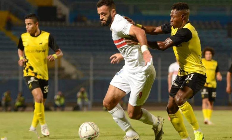 وأطلق أحمد سعيد تسديدة قوية مرت بجوار مرمى الزمالك بقليل.
