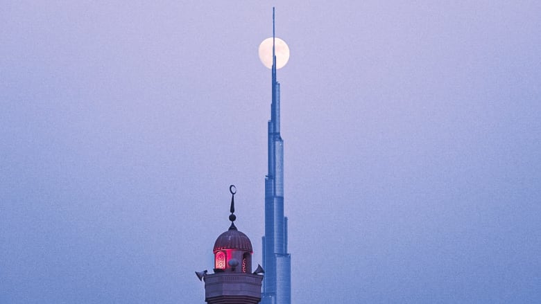 صورة نادرة .. القمر يلامس قمة أعلى برج في العالم