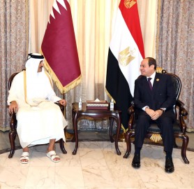 وأكد أمير قطر تطلع بلاده لتعزيز التباحث مع مصر حول سبل تعزيز العلاقات الثنائية؛ بما يخدم تطلعات الدولتين، خاصةً في ضوء الدور الاستراتيجي والمحوري الذي تقوم به مصر تحت قيادة الرئيس السيسي في سبيل ترسيخ الأمن والاستقرار والتنمية على الصعيد الإقليمي، وفي إطار الدفاع عن قضايا الأمة العربية.