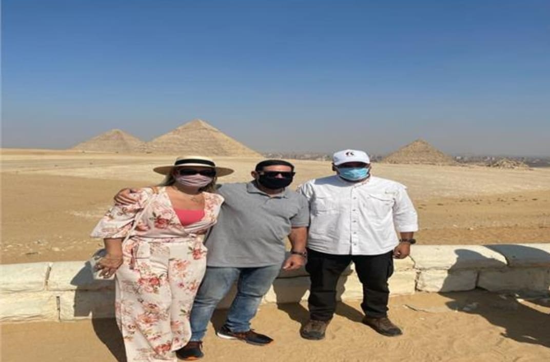وكان في استقبالهم أشرف محي مدير منطقة آثار الهرم والذي اصطحبهم في جولة داخل المنطقة والتي شملت الهرم الأكبر وتمثال أبو الهول ومنطقة البانوراما.