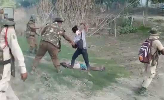 لسنا نحن المسلمين الإرهابين كما يريدون إلصاق تهمة الإرهاب بنا ، وهذا هو الإرهاب بعينه  تلتقطه عيون  الكاميرات في  ذلك المشهد الإجرامي البشع غير الإنساني ، عندما كانت الشرطة الهندية تقتل المسلمين في ولاية آسام بشمالي شرقي البلاد  بعد أن تم هدم وحرق بيوت الألاف منهم ، وكان ضمن المشاهد الرهيبة  ذلك المشهد الذي أظهر الشرطة الهندية وهي تقتل الشاب المسلم ((معين الحق)) برصاصات كثيفة  في القلب من كل الجنود ، فسقط صريعا تنزف الدماء من قلبه  ، ولم تكفِ الرصاصات والدماء المنهمرة من قلب ذلك الشاب ، بل نزلوا عليه ضربا بالهروات وانضم إليهم مصور صحفي داس على جسده وطعنه بقدمه دون أن تمنعه الشرطة المجرمة ، ودون مراعاة حرمة قتيل مرمي على الأرض صعدت روحه الطاهرة الى السماء.