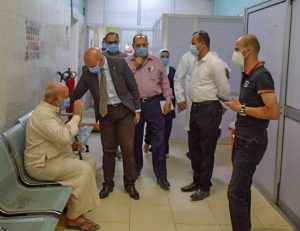 كما تفقد الأعمال الجارية لإنشاء سلم خارجي لدخول وخروج مرضي العيادات الخارجية، وزيادة القدرة الاستيعابية للقسم، وتحرك المترددين في خطوط سير منفصلة عن الحالات المشتبه إصابتها بفيروس كورونا المستجد “كوفيد 19”