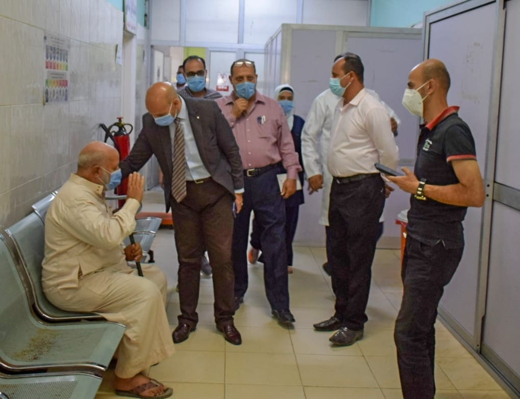 وتفقد وكيل الوزارة خلال الزيارة قسم الإستقبال والطوارئ، والتأكد من توافر الأدوية والمستلزمات الطبية بالقسم، موجهاً باستبدال أي أسرة تحتاج إلى صيانة، مع عمل اللازم لها، كما تم التأكد من تواجد الفرق الطبية بالأقسام الطبية، وإرتداءهم للواقيات الشخصية، واطمأن علي الخدمات الطبية المقدمة للمرضي بقسم العناية المركزة، وقسم الكلي الصناعي، وحرص على الاستماع إلى المرضي، وشدد على توفير كافة أوجه الرعاية الطبية لهم.