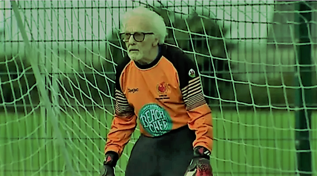 شاهد : مسن بريطاني يلعب كرة قدم وعمرة 88 عاما