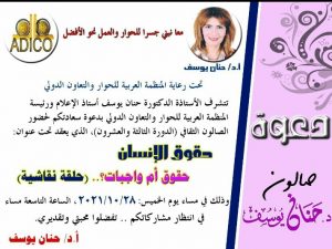 تحت رعاية المنظمة العربية للحوار والتعاون الدولي انعقد الصالون الثقافي للدكتورة حنان يوسف في دورته الثالثة والعشرون من خلال تطبيق (زووم) وعبر موقع (الفيسبوك)، تحت عنوان: “حقوق الإنسان.. حقوق أم واجبات.. حلقة نقاشية؟”.