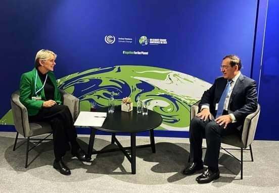 عقد المهندس طارق الملا وزير البترول والثروة المعدنية جلسة مباحثات ثنائية مع السيدة جينفر جرانهولم وزيرة الطاقة الامريكية على هامش مشاركته في فعاليات القمة العالمية للمناخ فى جلاسكو باسكتلندا Cop26. تناولت المباحثات اوجه التعاون الحالية بين مصر والولايات المتحدة في مجال الطاقة وعلاقات الشراكة الوثيقة بين البلدين في هذا المجال .