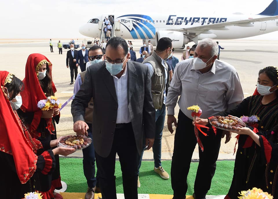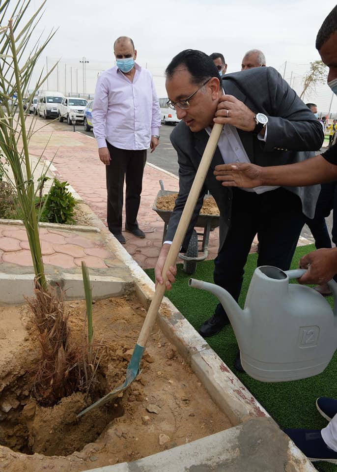 مدبولي يفتتح قاعة كبار الزوار بمطار الخارجة ويغرس فسيلة نخيل في حديقة 30 يونيو
