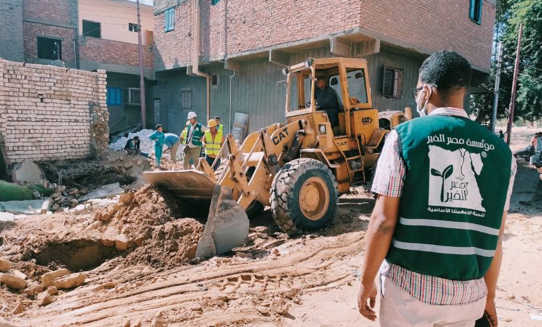 بدأت مؤسسة مصر الخير تنفيذ إعادة ترميم وبناء أول منزل من المنازل المتضررة من السيول بمحافظة أسوان ضمن خطة محافظة أسوان لدعم الأسر المتضررة من تداعيات السيول التى تعرضت لها بعض المناطق فى المحافظة