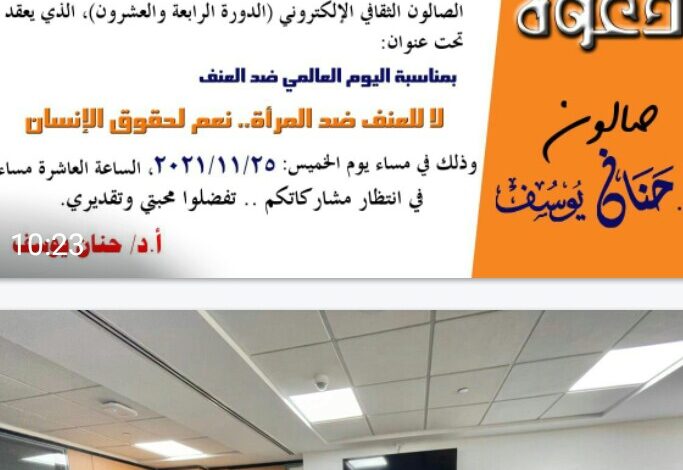 ٢٥ نوفمبر ٢٠٢١: صالون ثقافي لعدد من رموز الفكر العربي لمواجهة العنف ضد المرأة.