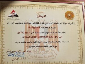 المنوفية تفوز بالمركز الأول علي مستوي الجمهورية في مسابقة ” أفضل النظم والتطبيقات “