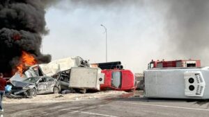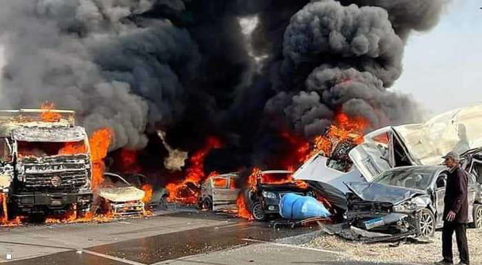 قتلى ومصابين في حادث تصادم 13 سيارة على الطريق الدائري الأوسطي